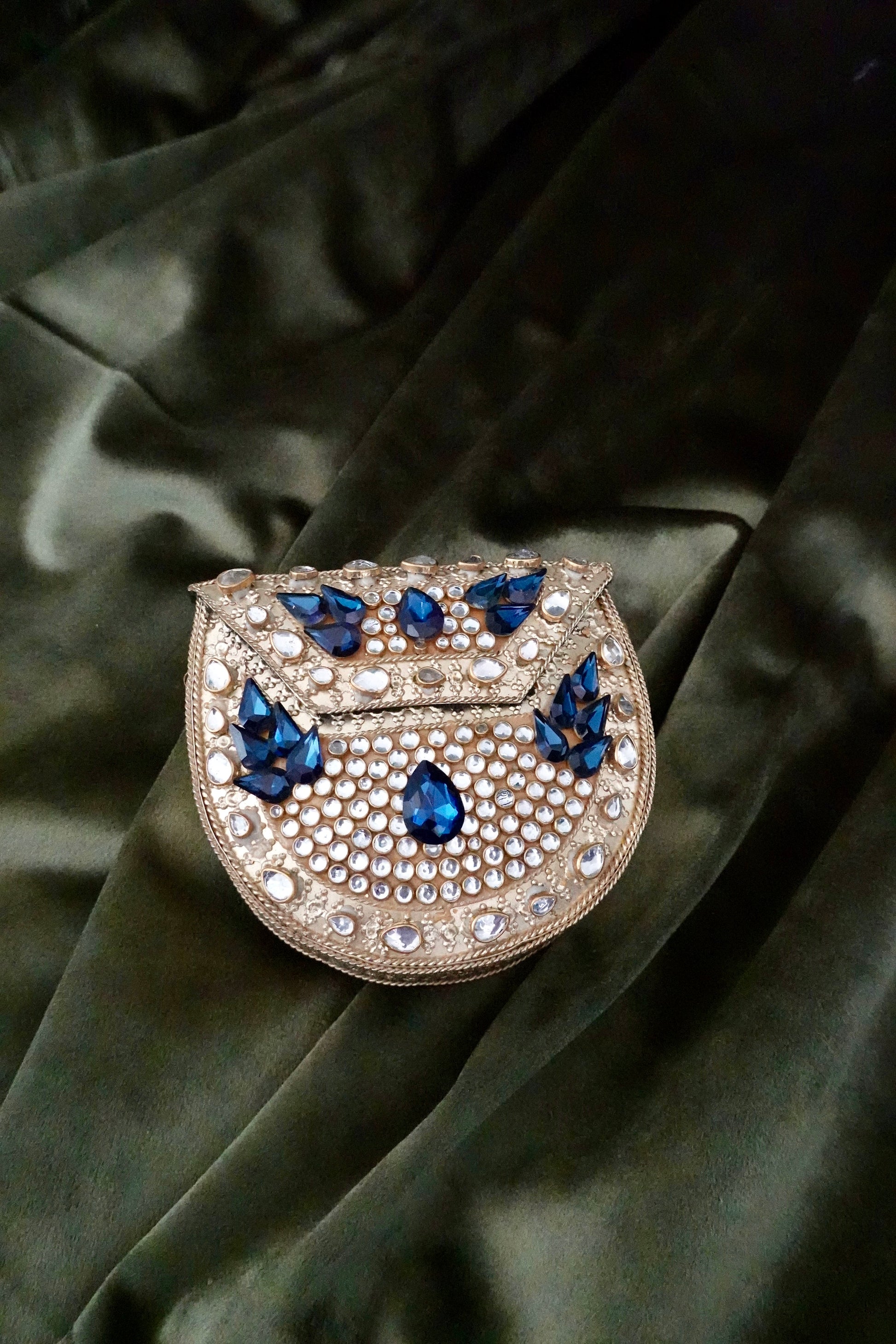 Each of our Kundan Clutches is meticulously handcrafted by skilled artisans. Due to the delicate nature of the materials and the intricate process of hand-placing stones and gems using adhesive, minor variations and imperfections are part of their charm.